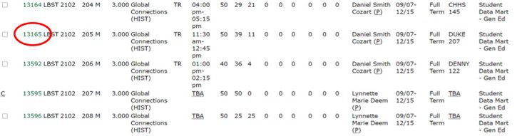 Step 2: Take note of CRN number for the section you would like to be added to the waitlist.