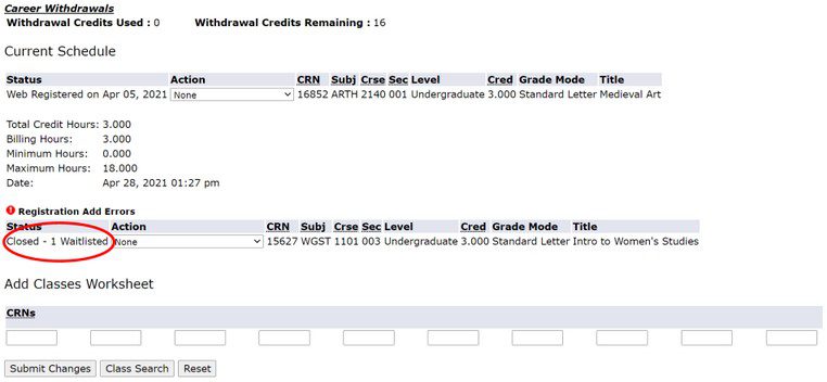 Step 4: You will get an add error – Closed – “#” Waitlisted.